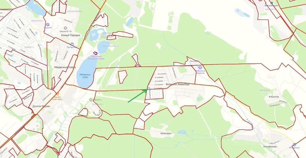 Земельный участок на первой линии д. Большие Жеребцы ул. Солнечная 17, общая площадь 3026м2 и строения общей площадью 1200м2.